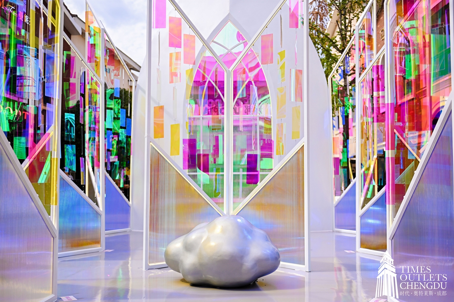 据介绍,「光影乌托邦」以威尼斯琉璃工艺为灵感,打造五大奇幻美陈装置,包括琉璃之光、流光心愿漂流站、幻光启航、光屿漫游艇、虹光漫境,将阳光的色彩与建筑空间巧妙结合,呈现如梦似幻的视觉盛宴。每一处装置皆可互动打卡,引领观众步入光影交织的异想世界,感受艺术与生活的共鸣。