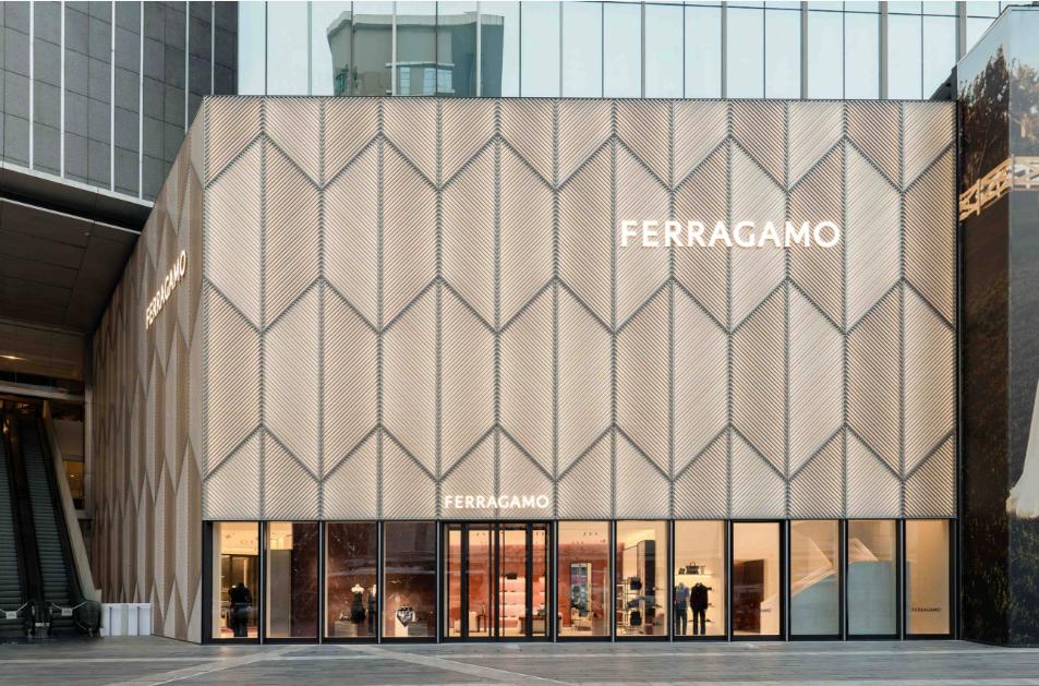 据介绍,Ferragamo挚邀知名建筑师Vincent Van Duysen担纲项目设计,其作品兼顾理性与感性,呈现别出心裁的独到风格。精品店坐落于成都核心商圈显眼转角区域,外立面贯通上下两层,选用了与托斯卡纳地区相关的建筑元素——Bugnato石材工艺,以现代手法重新诠释Bugnato图案。旗舰店内部,香波石材地板与手工设计图案的定制淡雅色调地毯相映成趣。