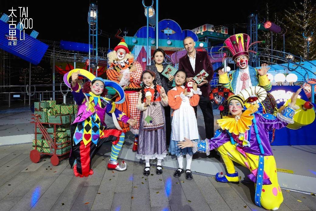 太古地产中国内地零售业务总经理兼成都太古里总经理伍玉珊女士携成都居舍酒店总经理柯纳斯先生,与多位“快乐使者”合影