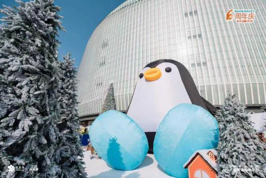 据介绍,购物中心外广场开放式1000㎡企鹅雪国小镇。10米高企鹅“LIULIU”、雪松森林与光影装置共同营造沉浸式冬季秘境,让企鹅”LIULIU”成为合影高频率“明星”,并结合真雪体验区,实现“可触摸、可游玩、可互动、可传播”的一站式冰雪互动,将远方雪景转化为身边惊喜。