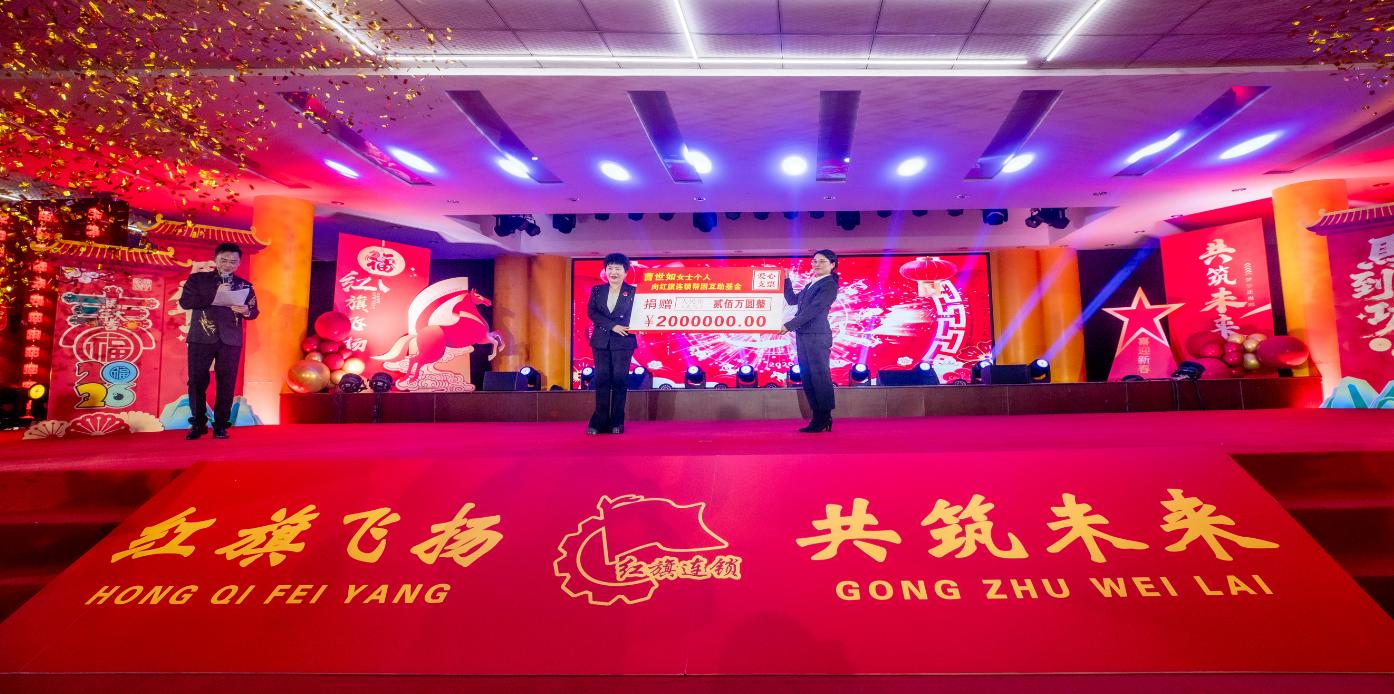 在活动捐赠仪式上,曹世如总经理个人再次向红旗连锁帮困互助基金捐赠200万元,此笔善款将用于公司部分家庭困难的职工帮扶。