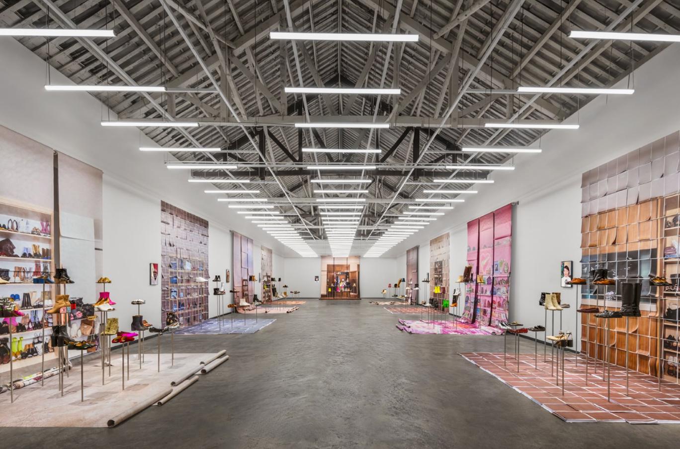 展览内设有Maison Margiela Café,为访客提供休憩交流的空间。同时展出了一系列品牌档案中的典藏Tabi作品,从1989春夏系列的初代靴款到近期的全新演绎,包括Artisanal系列中的Tabi Claw爪形鞋。Tabi的经典设计在各个系列中不断被重新诠释,呈现出新的造型与材质,成为品牌进行创意实验的画布。